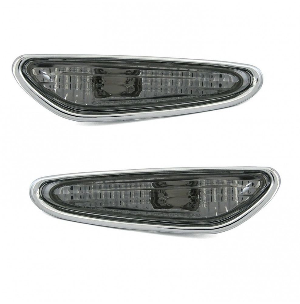 • Deux clignotants latéraux noir fumé cristal avec contours chrome (droit + gauche) et deux ampoules orange